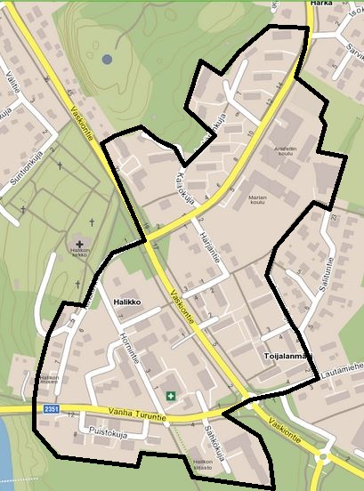 Halikosta on keskustaajaman osalta ensimmäisenä indeksikartta kertomassa laskenta-alueiden sijainnista.